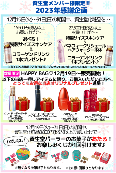 【蒲田4F店】Happy bag★資生堂 代表商品に豪華プレゼントをご用意♪