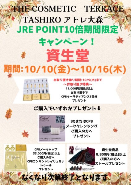 アトレ大森店限定★資生堂 お得情報 11,000円税込以上お取り置きで特別ギフト♪