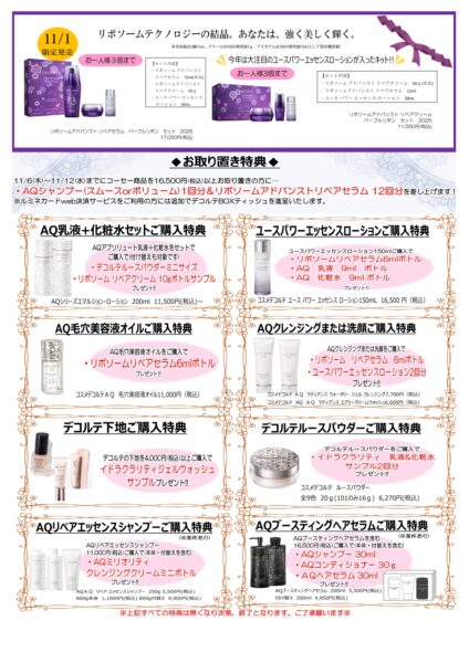 【KOSE】DressCode店限定特典★ 16,500円(税込)以上お取り置きでAQヘアケアサンプル12回プレゼント!|ザ・コスメティックテラス・タシロ(横浜/蒲田/新宿)