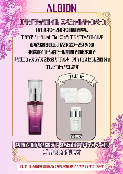 ジョイナス店のALBIONからお知らせです☆彡