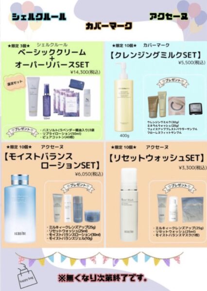 【ジョイナス店】2026年福袋★「シェルクルール」「カバーマーク」「アクセーヌ」 低刺激処方の定番アイテムを厳選し、さらに豪華特典付き☆|ザ・コスメティックテラス・タシロ(横浜/蒲田/新宿)