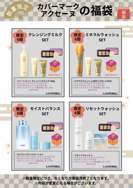 【蒲田店】2026年福袋★カバーマーク・アクセーヌ 肌を知り尽くしたブランド! 美容のプロも愛用するアイテムを揃えた福袋★