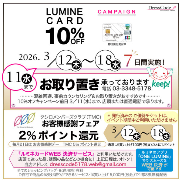 【DressCode店】ルミネカード10%オフキャンペーン 「ルミネWEB決済サービス」もご利用いただけます★