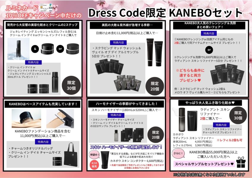 【DressCodeルミネ新宿店】ルミネカード10%OFF期間限定!KANEBO特別セット登場