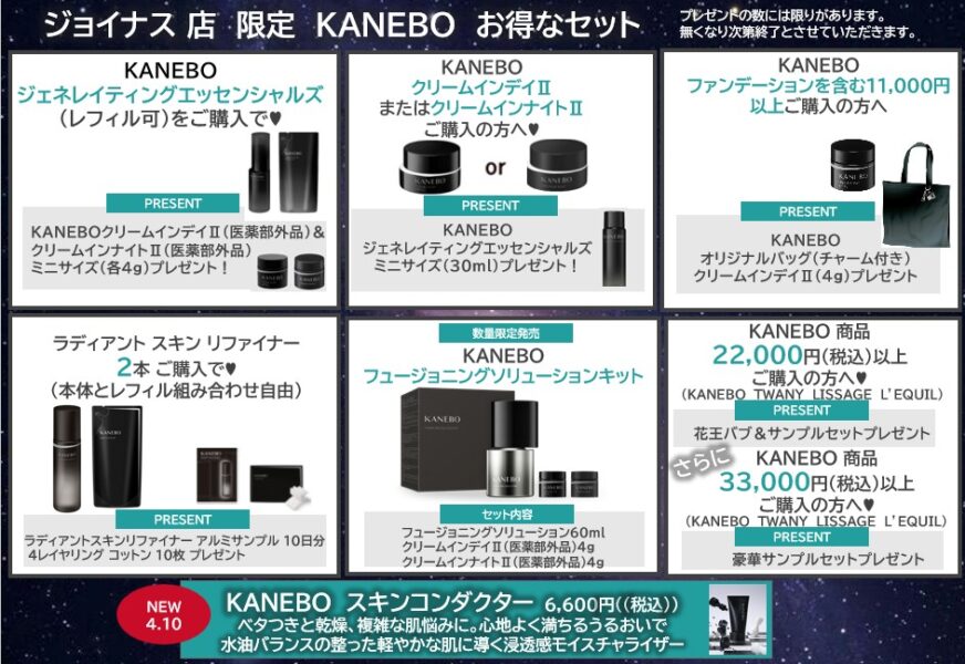 ジョイナス店〈KANEBO〉よりお知らせです☆彡