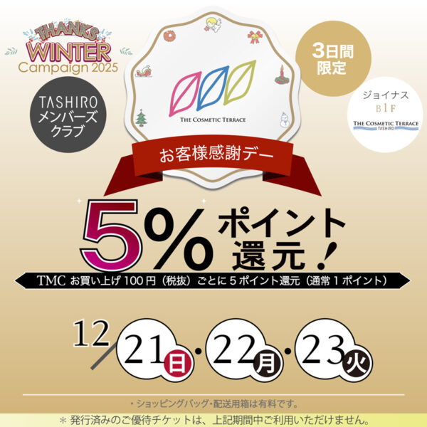 TMCアプリ・カード会員様様限定! 毎月15日・21日ポイント5倍♪ ※15日は60歳以上の方のみ