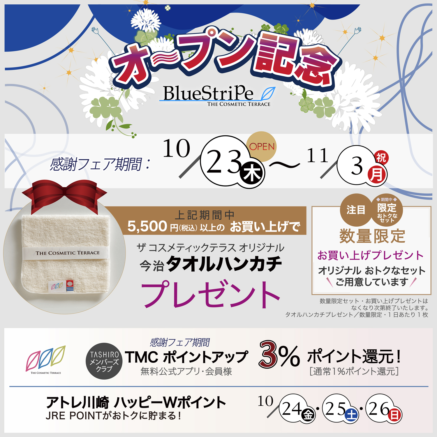 2025.10.17 プレスリリース 『BlueStripe アトレ川崎店』10月23日(木)オープン! アトレ川崎店 2025.10.16 セール・催事 Leafieルミネ横浜店★ご購入特典&イベント情報 PAUL&JOE スペシャルイベント18日・19日開催 ルミネ横浜店 2025.10.16 セール・催事 10月お客様感謝デーのご案内☆ 19日はグランドクラス会員様限定で5倍還元! 東急プラザ蒲田4F店 東急プラザ蒲田2F店 2025.10.16 セール・催事 【DEUX店】KOSE・POLAご購入特典 税込16,500円以上ご購入で豪華プレゼント 東急プラザ蒲田2F店 2025.10.03 アトレ大森店セール・催事ブランド・商品店舗 アトレ大森店限定★ALBION お得情報 22,000円税込以上お取り置きで特別ギフト♪ アトレ大森店 2025.10.03 アトレ大森店セール・催事ブランド・商品店舗 アトレ大森店限定★KOSE お得情報 16,500円税込以上ご購入で特別ギフト♪ アトレ大森店 2025.10.02 アトレ大森店セール・催事ブランド・商品店舗 アトレ大森店限定★資生堂 お得情報 11,000円税込以上お取り置きで特別ギフト♪ アトレ大森店 2025.10.02 アトレ大森店セール・催事店舗 THE COSMETIC TERRACE TASHIRO アトレ大森店でJRE POINT 10倍WEEK! アトレ大森店 2025.10.02 DEUX店DressCodeルミネ新宿店アトレ大森店ジョイナス店ブランド・商品店舗 【THE COSMETIC TERRACE 全店】コスメデコルテ エターナル ブルーム コレクション完売 ジョイナス店 アトレ大森店 東急プラザ蒲田2F店 ルミネ新宿店 2025.10.01 DEUX店DressCodeルミネ新宿店アトレ大森店ジョイナス店ブランド・商品店舗東急プラザ蒲田店 🌿【ベスコス多数受賞】話題のマルチオイルがTHE COSMETIC TERRACEにて限定発売!🌿 ジョイナス店 東急プラザ蒲田4F店 東急プラザ蒲田2F店 ルミネ新宿店 2025.09.30 DEUX店セール・催事ブランド・商品店舗 【DEUX店】コスメデコルテ エターナル ブルーム コレクション 予約についてのお知らせ 東急プラザ蒲田2F店 2025.09.29 セール・催事店舗東急プラザ蒲田店 蒲田4F店★カバーマーク シミゼロ体験イベント 肌悩みを瞬時にカバーするクリームファンデーション♪ 東急プラザ蒲田4F店 1 / 6212345678910...NEXT62 Category: 店舗(688) ジョイナス店(236) DressCodeルミネ新宿店(217) 東急プラザ蒲田店(212) Leafieルミネ横浜店(133) DEUX店(67) アトレ大森店(40) セール・催事(393) ブランド・商品(287) TMCアプリ(127) サービス(24) その他(13) プレスリリース(3) Archive: 月を選択 2025年10月 (10) 2025年9月 (22) 2025年7月 (12) 2025年6月 (11) 2025年5月 (30) 2025年4月 (11) 2025年3月 (31) 2025年2月 (8) 2025年1月 (4) 2024年12月 (42) 2024年11月 (28) 2024年10月 (3) 2024年9月 (24) 2024年8月 (13) 2024年7月 (1) 2024年6月 (1) 2024年5月 (28) 2024年4月 (4) 2024年3月 (25) 2024年2月 (12) 2024年1月 (16) 2023年12月 (34) 2023年11月 (38) 2023年10月 (13) 2023年9月 (24) 2023年8月 (19) 2023年7月 (25) 2023年6月 (17) 2023年5月 (43) 2023年4月 (30) 2023年3月 (43) 2023年2月 (17) 2023年1月 (8) 2022年12月 (22) 2022年11月 (33) 2022年10月 (9) 2022年9月 (7) 2022年8月 (4) 2022年7月 (5) 2022年6月 (2) 2022年5月 (1) 2022年4月 (1) 2022年3月 (1) 2022年2月 (1) 2021年4月 (1)
