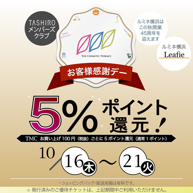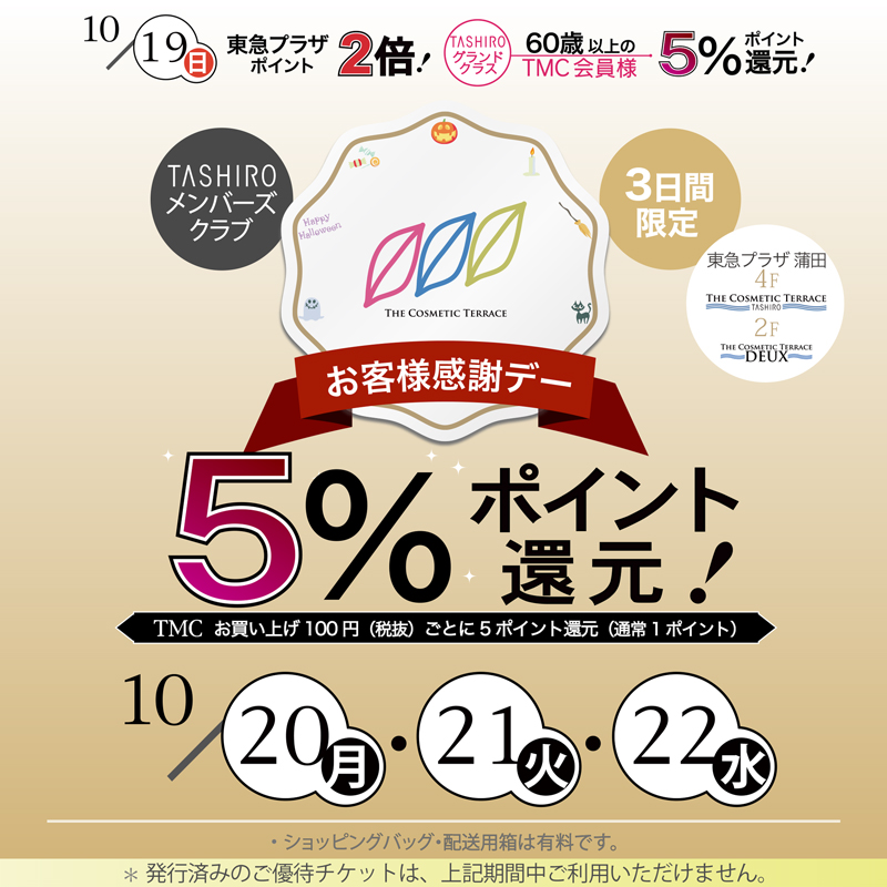 2025.10.16 セール・催事 Leafieルミネ横浜店★ご購入特典&イベント情報 PAUL&JOE スペシャルイベント18日・19日開催 ルミネ横浜店 2025.10.16 セール・催事 10月お客様感謝デーのご案内☆ 19日はグランドクラス会員様限定で5倍還元! 東急プラザ蒲田4F店 東急プラザ蒲田2F店 2025.10.16 セール・催事 【DEUX店】KOSE・POLAご購入特典 税込16,500円以上ご購入で豪華プレゼント 東急プラザ蒲田2F店 2025.10.03 アトレ大森店セール・催事ブランド・商品店舗 アトレ大森店限定★ALBION お得情報 22,000円税込以上お取り置きで特別ギフト♪ アトレ大森店 2025.10.03 アトレ大森店セール・催事ブランド・商品店舗 アトレ大森店限定★KOSE お得情報 16,500円税込以上ご購入で特別ギフト♪ アトレ大森店 2025.10.02 アトレ大森店セール・催事ブランド・商品店舗 アトレ大森店限定★資生堂 お得情報 11,000円税込以上お取り置きで特別ギフト♪ アトレ大森店 2025.10.02 アトレ大森店セール・催事店舗 THE COSMETIC TERRACE TASHIRO アトレ大森店でJRE POINT 10倍WEEK! アトレ大森店 2025.10.02 DEUX店DressCodeルミネ新宿店アトレ大森店ジョイナス店ブランド・商品店舗 【THE COSMETIC TERRACE 全店】コスメデコルテ エターナル ブルーム コレクション完売 ジョイナス店 アトレ大森店 東急プラザ蒲田2F店 ルミネ新宿店 2025.10.01 DEUX店DressCodeルミネ新宿店アトレ大森店ジョイナス店ブランド・商品店舗東急プラザ蒲田店 🌿【ベスコス多数受賞】話題のマルチオイルがTHE COSMETIC TERRACEにて限定発売!🌿 ジョイナス店 東急プラザ蒲田4F店 東急プラザ蒲田2F店 ルミネ新宿店 2025.09.30 DEUX店セール・催事ブランド・商品店舗 【DEUX店】コスメデコルテ エターナル ブルーム コレクション 予約についてのお知らせ 東急プラザ蒲田2F店 2025.09.29 セール・催事店舗東急プラザ蒲田店 蒲田4F店★カバーマーク シミゼロ体験イベント 肌悩みを瞬時にカバーするクリームファンデーション♪ 東急プラザ蒲田4F店 2025.09.23 TMCアプリセール・催事店舗東急プラザ蒲田店 【蒲田4F店限定】KANEBOお得情報★ ご購入特典・定期便お申し込み特典♪ 東急プラザ蒲田4F店 1 / 6212345678910...NEXT62 Category: 店舗(690) ジョイナス店(236) DressCodeルミネ新宿店(217) 東急プラザ蒲田店(213) Leafieルミネ横浜店(134) DEUX店(68) アトレ大森店(40) セール・催事(393) ブランド・商品(287) TMCアプリ(127) サービス(24) その他(15) Archive: 月を選択 2025年10月 (9) 2025年9月 (22) 2025年7月 (12) 2025年6月 (11) 2025年5月 (30) 2025年4月 (11) 2025年3月 (31) 2025年2月 (8) 2025年1月 (4) 2024年12月 (42) 2024年11月 (28) 2024年10月 (3) 2024年9月 (24) 2024年8月 (13) 2024年7月 (1) 2024年6月 (1) 2024年5月 (28) 2024年4月 (4) 2024年3月 (25) 2024年2月 (12) 2024年1月 (16) 2023年12月 (34) 2023年11月 (38) 2023年10月 (13) 2023年9月 (24) 2023年8月 (19) 2023年7月 (25) 2023年6月 (17) 2023年5月 (43) 2023年4月 (30) 2023年3月 (43) 2023年2月 (17) 2023年1月 (8) 2022年12月 (22) 2022年11月 (33) 2022年10月 (9) 2022年9月 (7) 2022年8月 (4) 2022年7月 (5) 2022年6月 (2) 2022年5月 (1) 2022年4月 (1) 2022年3月 (1) 2022年2月 (1) 2021年4月 (1)