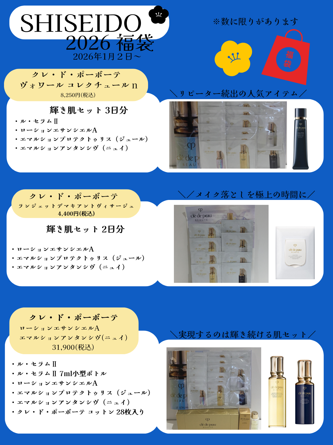 2025.12.19 BlueStripeアトレ川崎店セール・催事店舗 【BlueStripeアトレ川崎店】2026年福袋★資生堂 オープン記念! 「肌が変わる」と支持される資生堂の実力派アイテムをセットに★ 確かな効果をお得に体験できる新年限定福袋です♪ アトレ川崎店 2025.12.19 BlueStripeアトレ川崎店セール・催事店舗 【川崎店】2026年福袋★POLA アトレ川崎店のオープン記念福袋! 美容のプロも愛用するPOLAのスキンケアを、福袋だけの特別セットで★ アトレ川崎店 2025.12.19 BlueStripeアトレ川崎店セール・催事店舗 【BlueStripeアトレ川崎店】2026年福袋★KOSE オープンしたばかりのアトレ川崎店限定! 6日間限定の人気アイテムを試せる福袋をご用意しました★ アトレ川崎店 2025.12.19 BlueStripeアトレ川崎店セール・催事店舗 【BlueStripeアトレ川崎店】2026年福袋★KANEBO =10/23 OPEN記念=アトレ川崎店だけのKANEBO福袋★ 人気アイテムを贅沢に詰め込んだ特別セットをご用意! アトレ川崎店 2025.12.19 セール・催事店舗東急プラザ蒲田店 【東急プラザ蒲田店4F店】プレゼントキャンペーン ALBIONプレゼントキャンペーンを開催いたします! アルビオン/イグニス/エレガンスの対象商品をご購入で豪華サンプルセットをプレゼント★ 東急プラザ蒲田4F店 2025.12.19 サービスジョイナス店店舗 【ジョイナス店】輝く美肌エステWEB予約枠開放★ 25日(木) 12:00~ 26日(金) 13:00~・15:00~ 29日(月) 15:00~ ご予約は電話・ご来店でも受付中★ ジョイナス店 2025.12.18 DEUX店セール・催事店舗 【DEUX店】KOSEお得情報☆ お得な限定品やキャンペーンを実施中! コスメデコルテ人気セットの在庫が残りわずか★ 東急プラザ蒲田2F店 2025.12.17 ジョイナス店セール・催事店舗 【ジョイナス店】2026年福袋★KOSE 人気スキンケア&メイクを贅沢に詰め込んだ福袋! 新年だけの特別企画です★ 店頭 & お電話にて予約受付中♪ ジョイナス店 2025.12.17 セール・催事店舗東急プラザ蒲田店 【蒲田店】2026年福袋★カバーマーク・アクセーヌ 肌を知り尽くしたブランド! 美容のプロも愛用するアイテムを揃えた福袋★ 東急プラザ蒲田4F店 2025.12.17 ジョイナス店セール・催事店舗 【蒲田店】2026年完全オリジナル福袋 年齢不詳のベテラン美人BC達が本当に愛用しているアイテムを詰め込んだ福袋★ プロが選ぶ信頼のセットを新年だけの特価で! 東急プラザ蒲田4F店 2025.12.17 セール・催事店舗東急プラザ蒲田店 【蒲田店】2026年福袋★ALBION 肌質に合わせてプロが選ぶ、世界にひとつのオーダーメイド福袋も! 年末にご来店いただいた方へ、じっくりカウンセリングでご用意します★ 東急プラザ蒲田4F店 2025.12.17 ジョイナス店ブランド・商品店舗 ジョイナス店★パープルリボン残り僅か!限定商品なのでお早めに… お取り置きも承っております♪ ジョイナス店 1 / 6812345678910...NEXT68 Category: 店舗(743) ジョイナス店(254) DressCodeルミネ新宿店(224) 東急プラザ蒲田店(224) Leafieルミネ横浜店(136) DEUX店(75) アトレ大森店(48) BlueStripeアトレ川崎店(10) セール・催事(462) ブランド・商品(289) TMCアプリ(128) サービス(27) その他(13) プレスリリース(3) Archive: 月を選択 2025年12月 (43) 2025年11月 (28) 2025年10月 (13) 2025年9月 (22) 2025年7月 (12) 2025年6月 (11) 2025年5月 (30) 2025年4月 (11) 2025年3月 (31) 2025年2月 (8) 2025年1月 (4) 2024年12月 (42) 2024年11月 (28) 2024年10月 (3) 2024年9月 (24) 2024年8月 (13) 2024年7月 (1) 2024年6月 (1) 2024年5月 (28) 2024年4月 (4) 2024年3月 (25) 2024年2月 (12) 2024年1月 (16) 2023年12月 (34) 2023年11月 (38) 2023年10月 (13) 2023年9月 (24) 2023年8月 (19) 2023年7月 (25) 2023年6月 (17) 2023年5月 (43) 2023年4月 (30) 2023年3月 (43) 2023年2月 (17) 2023年1月 (8) 2022年12月 (22) 2022年11月 (33) 2022年10月 (9) 2022年9月 (7) 2022年8月 (4) 2022年7月 (5) 2022年6月 (2) 2022年5月 (1) 2022年4月 (1) 2022年3月 (1) 2022年2月 (1) 2021年4月 (1)